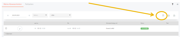 3. Nach dem Einloggen sehen Sie auf der Übersichtsseite einen orangen Button „Abwesenheit melden“. Klicken Sie diesen, um eine Abwesenheit zu erfassen.