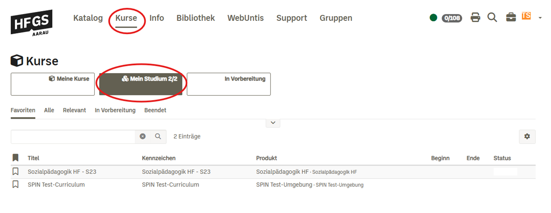 Für SPIN-Studierende der Sozialpädagogik gibt es zudem eine neue Curriculumsansicht. Diese finden Sie unter Kurse und Mein Studium: